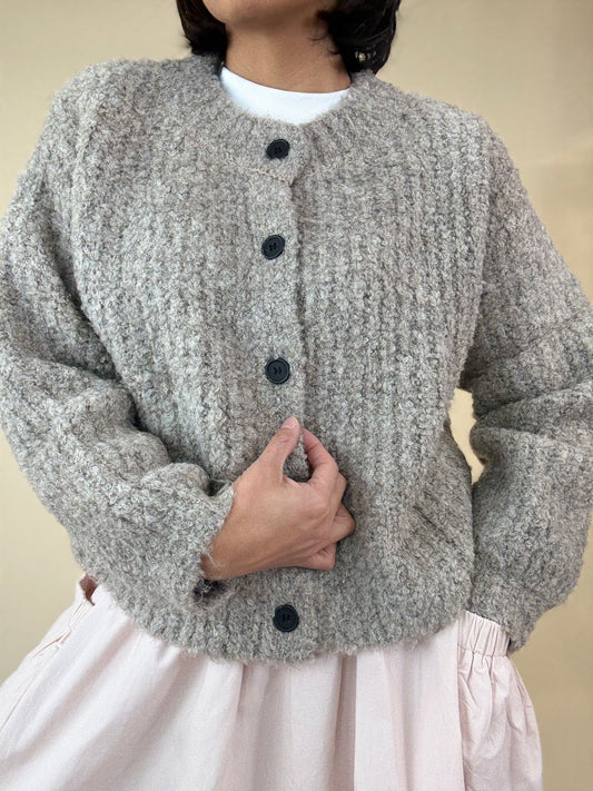 Soft Textured Knit Button Cardigan – Light Mocha Taupe